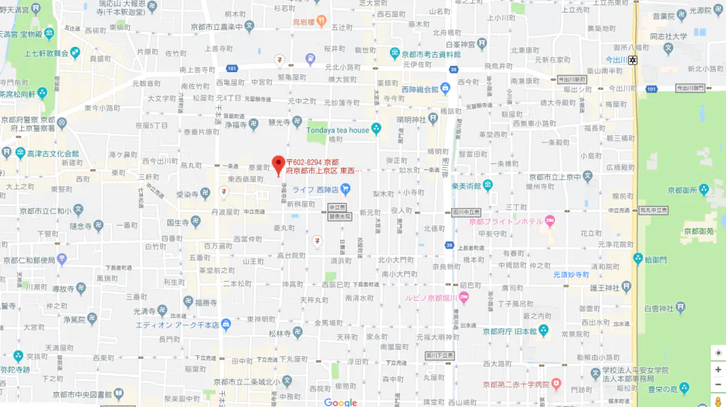 “& Sango Care”は京都市上京区西陣の町にあります。地図