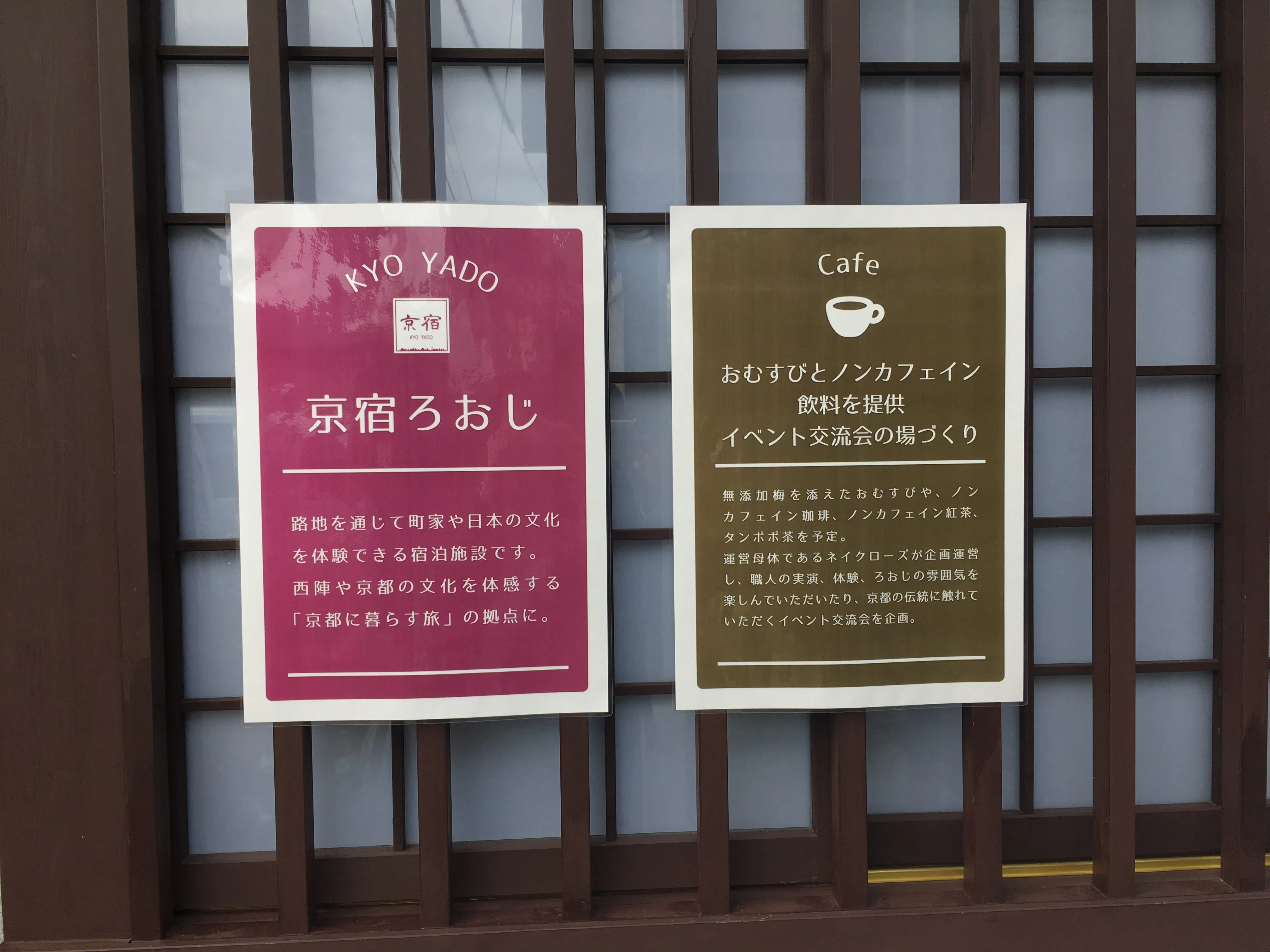 宿泊施設:路地を通じて、町家や日本文化を体感できる宿泊施設です。デイケアでの利用はもちろん、マンスリーでの宿泊など、京都西陣の文化に触れることができる新しい形の宿泊施設でもあります。客室4室。