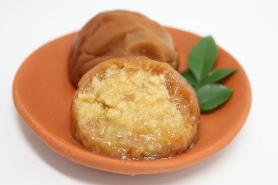 『"紀州梅まだい梅"は、南高梅の種をくり抜き、中に甘酢みそ味フレークが混入された、"梅"です。梅の長い歴史の中で初めての試みですが、海と山の味覚がコラボした、新しい食感が醸し出す絶妙のハーモニーは、あったかいご飯に、お茶漬けに、お酒のあてに大変好評を頂いております。』