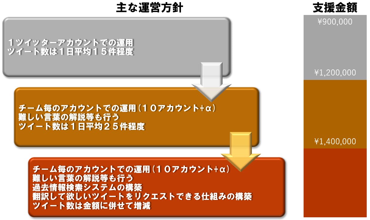 ・見やすさ向上のためにツイートアカウントを分けるための開発には更に+30万ほどのコストを見込んでおります。