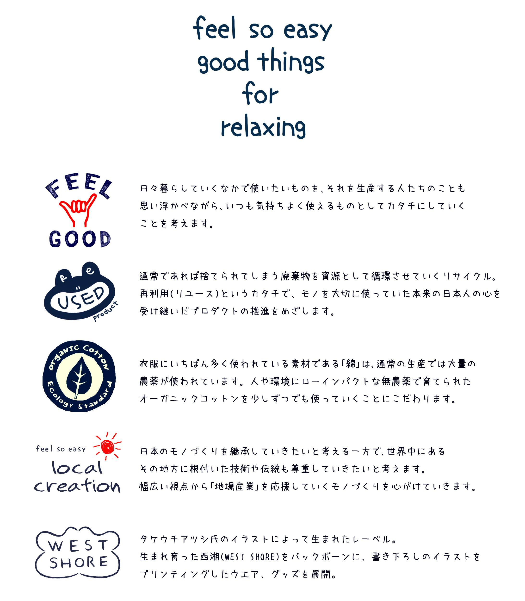 「feel so easy good things for relaxing」というブランドは、いくつかのモットーを掲げてコンセプトをつくっています。