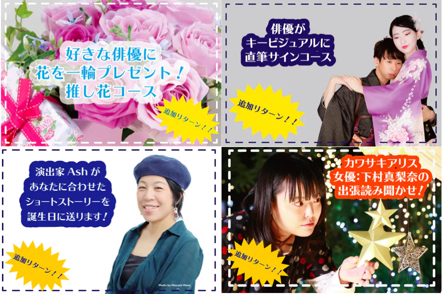 残り一週間ではございますが、俳優に関係する新しいリターンを追加いたしました!!