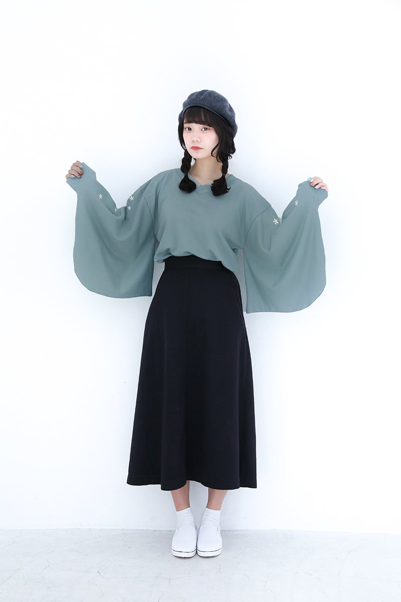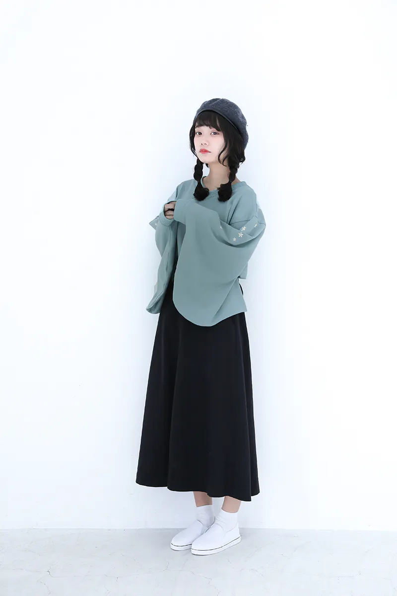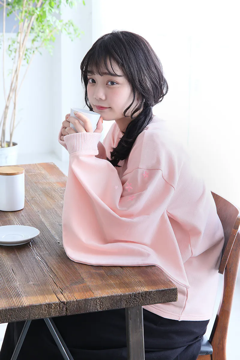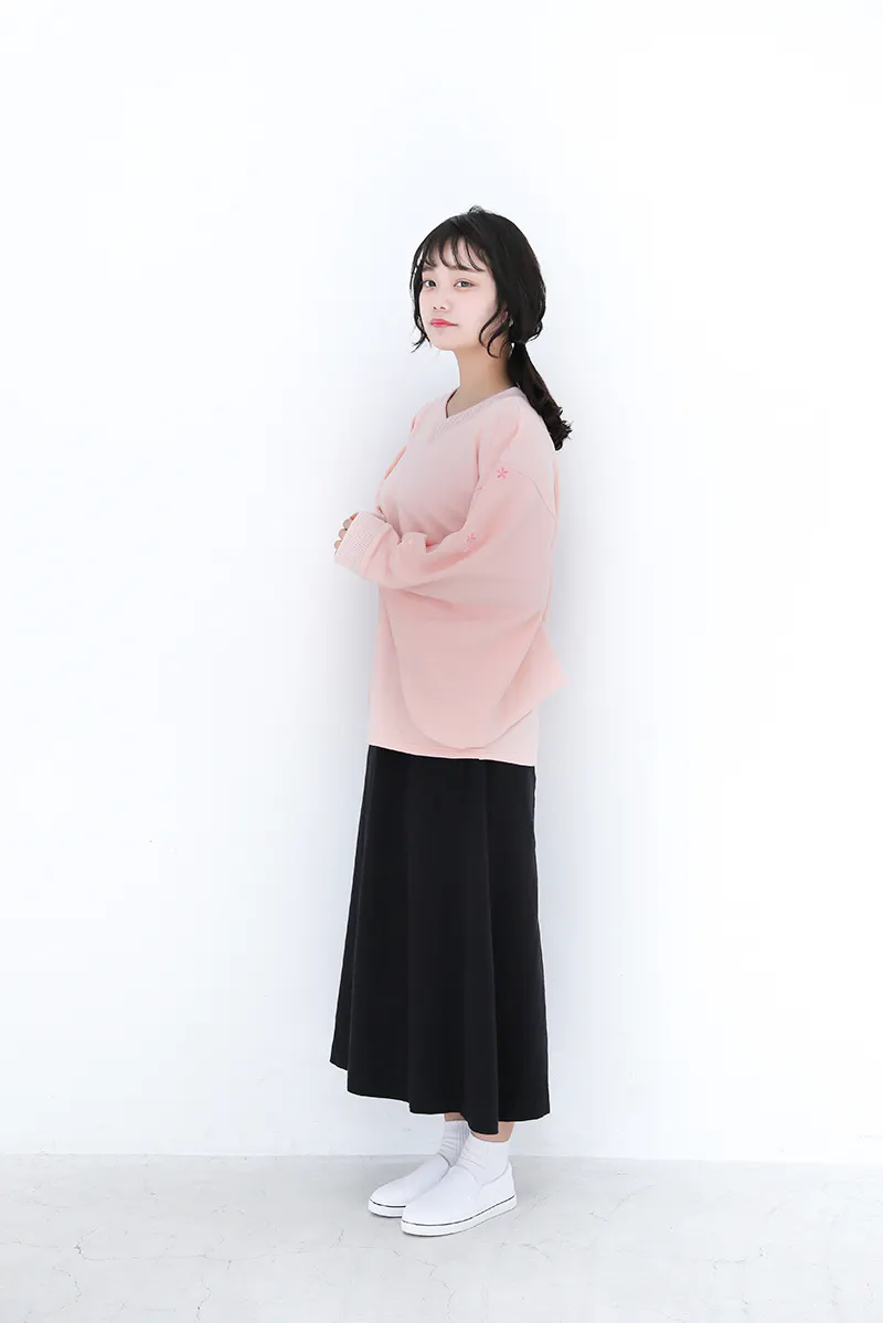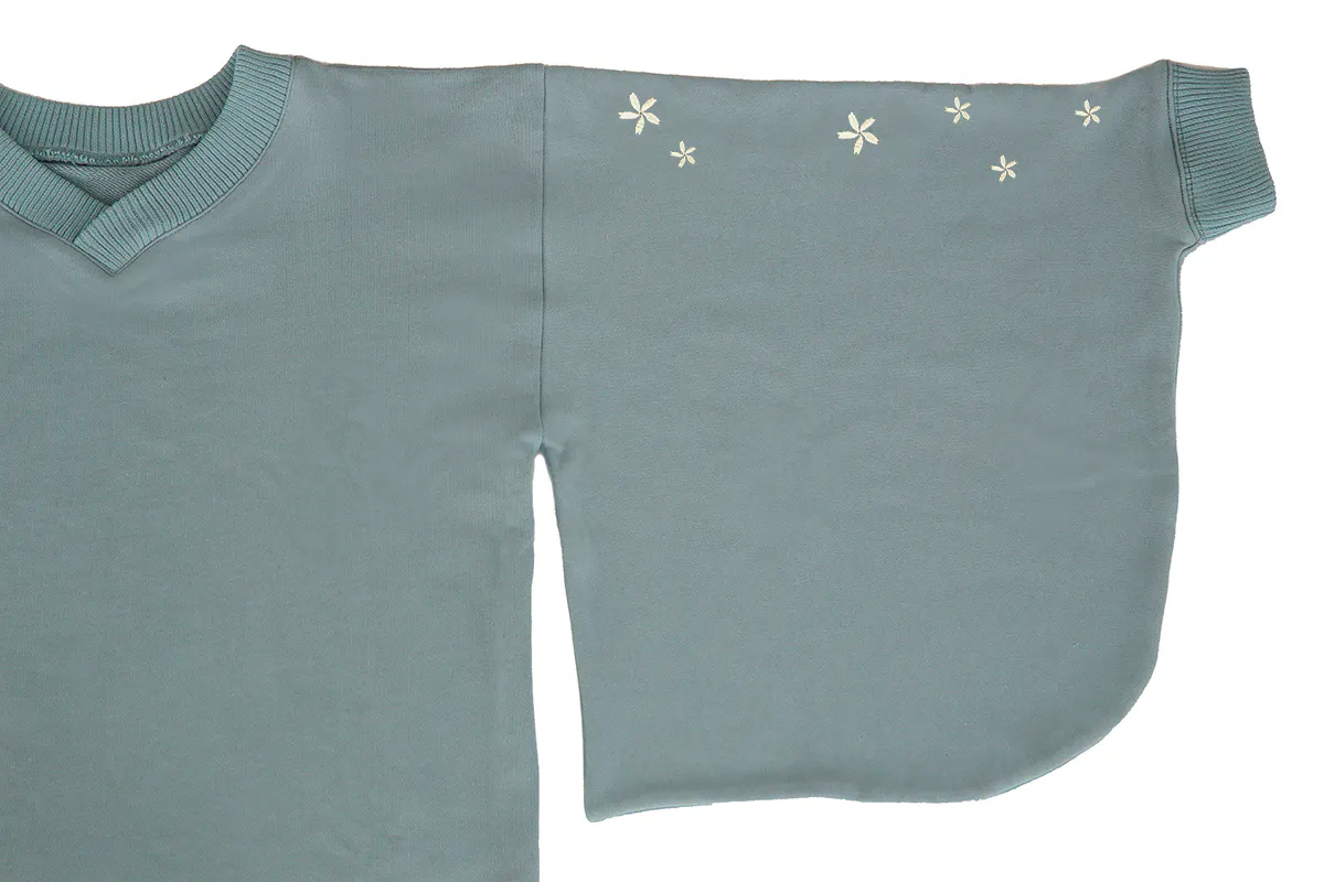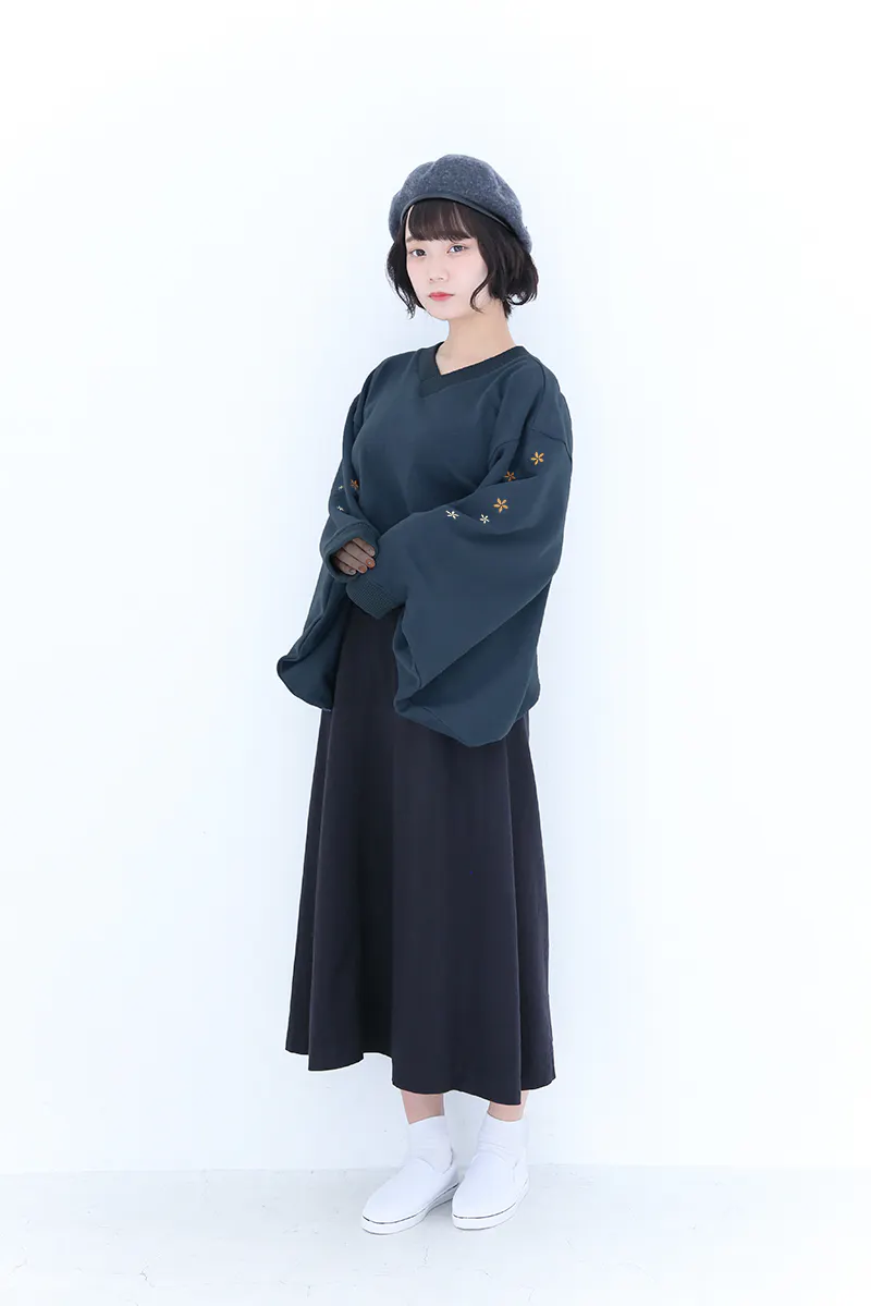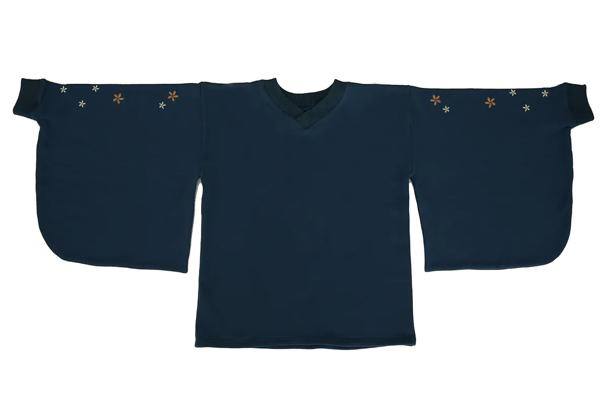 和風をさりげなく楽しめるよう、スウェット生地ながら振袖の仕様を取り入れています。