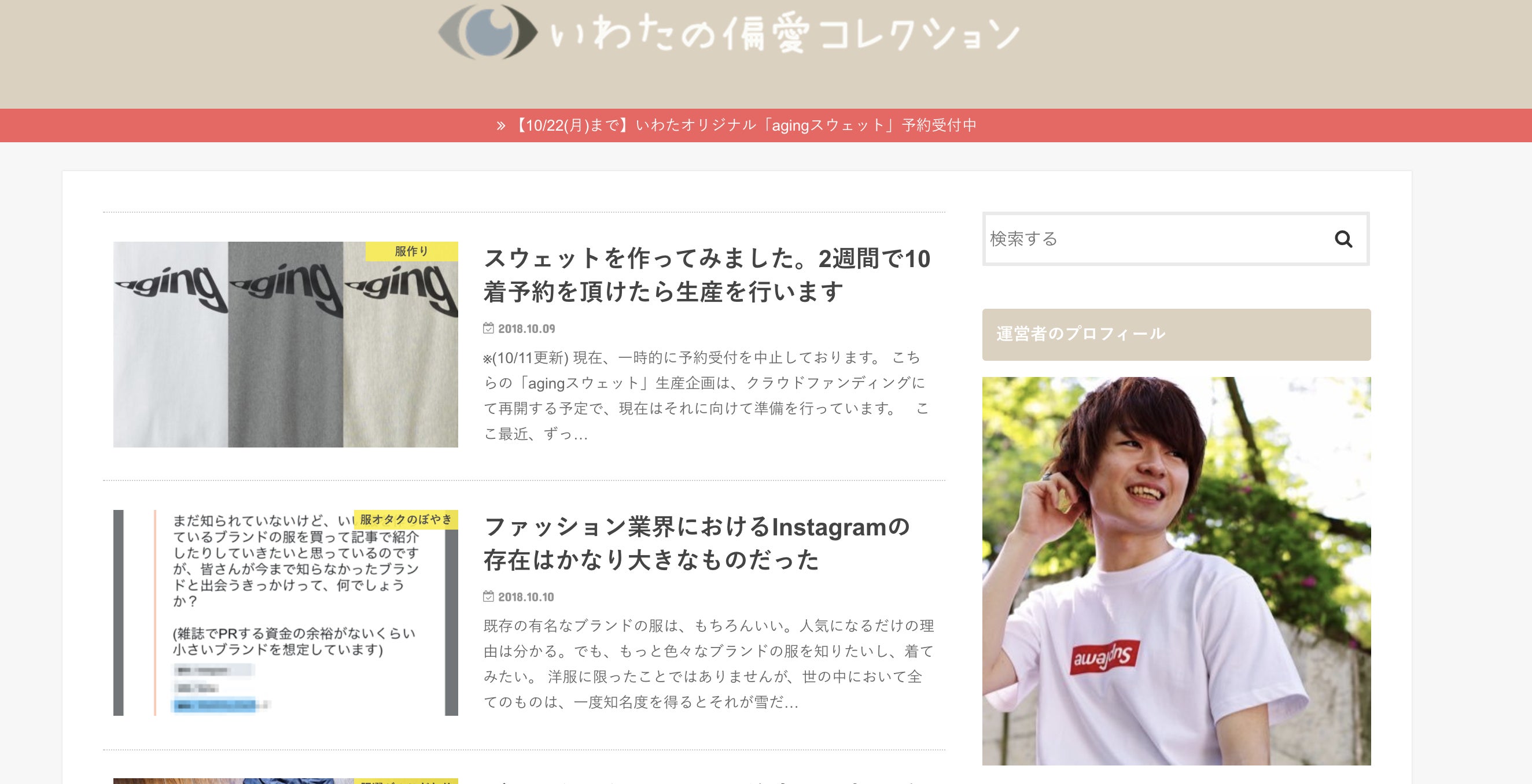 普段は「いわたの偏愛コレクション」というファッションブログを書いている、いわたと申します。