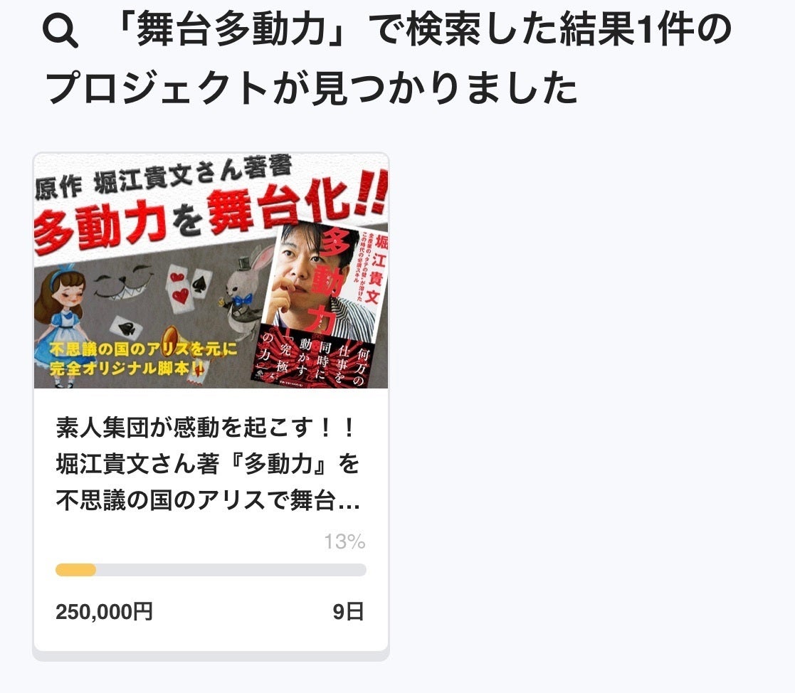 ⑤「プロジェクトを探す」から再度、”舞台多動力”を検索