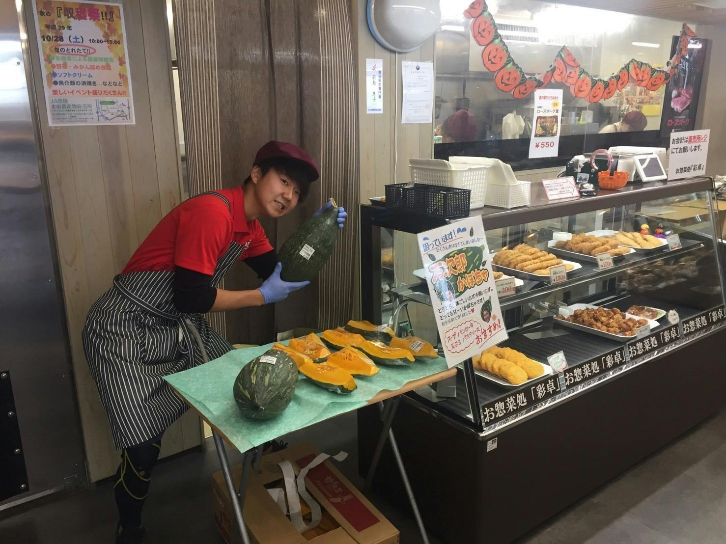 2016年に常陸太田市に「道の駅 ひたちおおた」がオープンしました。昨年には道の駅の中にあるお総菜コーナーで万史郎カボチャコロッケとして販売させてもらいました。冬至の日にはスープとして実演販売をさせてもらいました。今年は道の駅の中にあるパン屋さんでカボチャを使ったパンを販売させてもらう予定です。