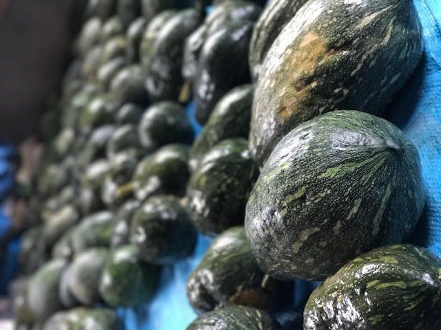 現在2年目に入り、万次郎カボチャというカボチャを育てて今の時期ちょうど収穫している最中です。