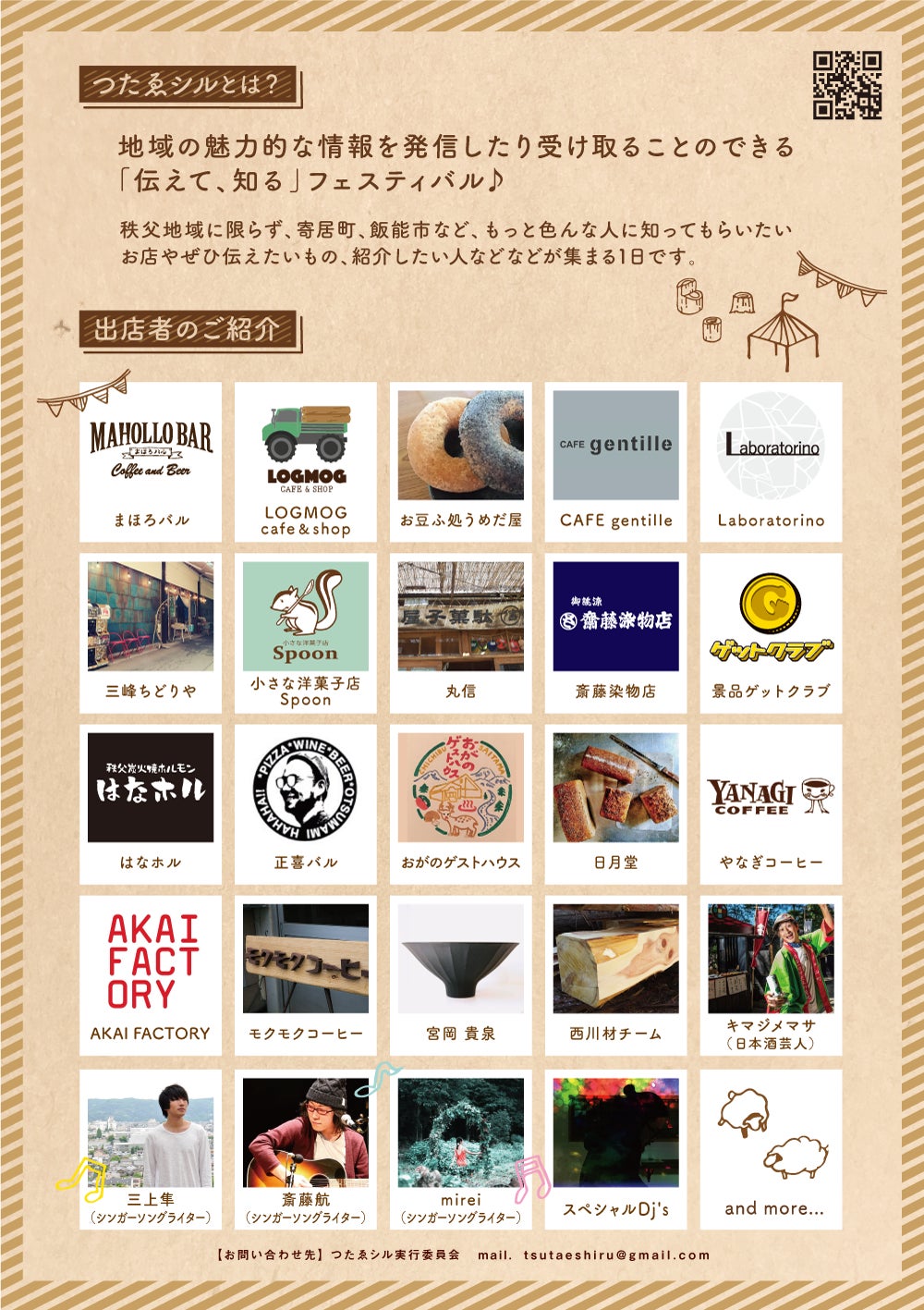 今回のフェスでは、このような出会いをたくさん作ることにより、秩父地域、そして近隣地域がさらに盛り上がり、面白いことが生まれていくことを実現したいと考えています。