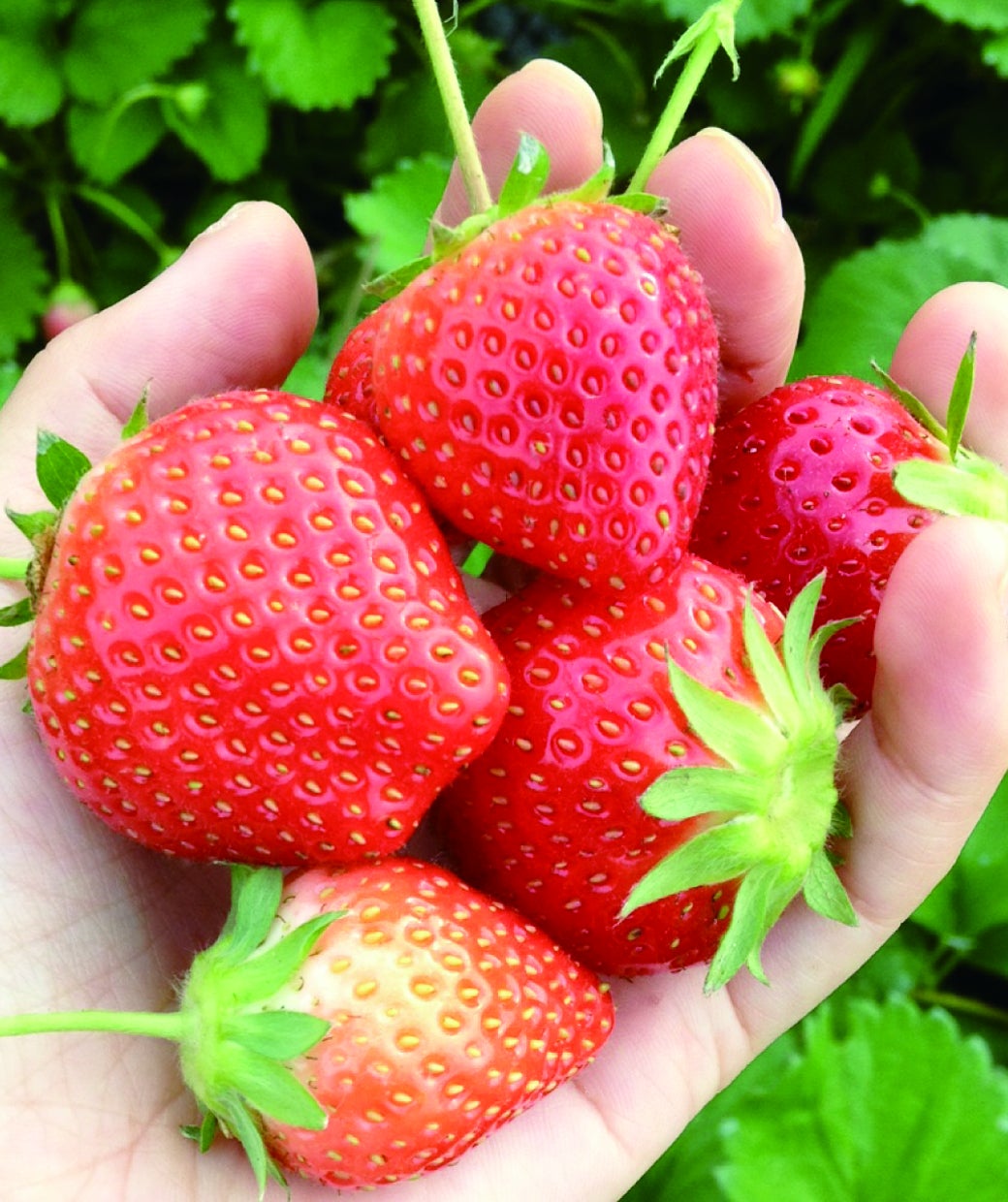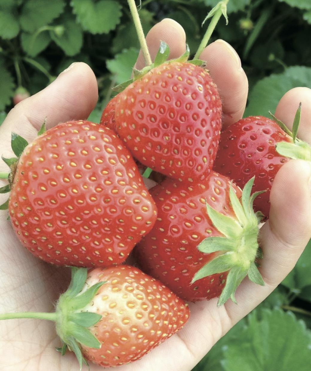 ↑オーガニックファームで育ったイチゴはそのまま安心してお召し上がりいただけます。