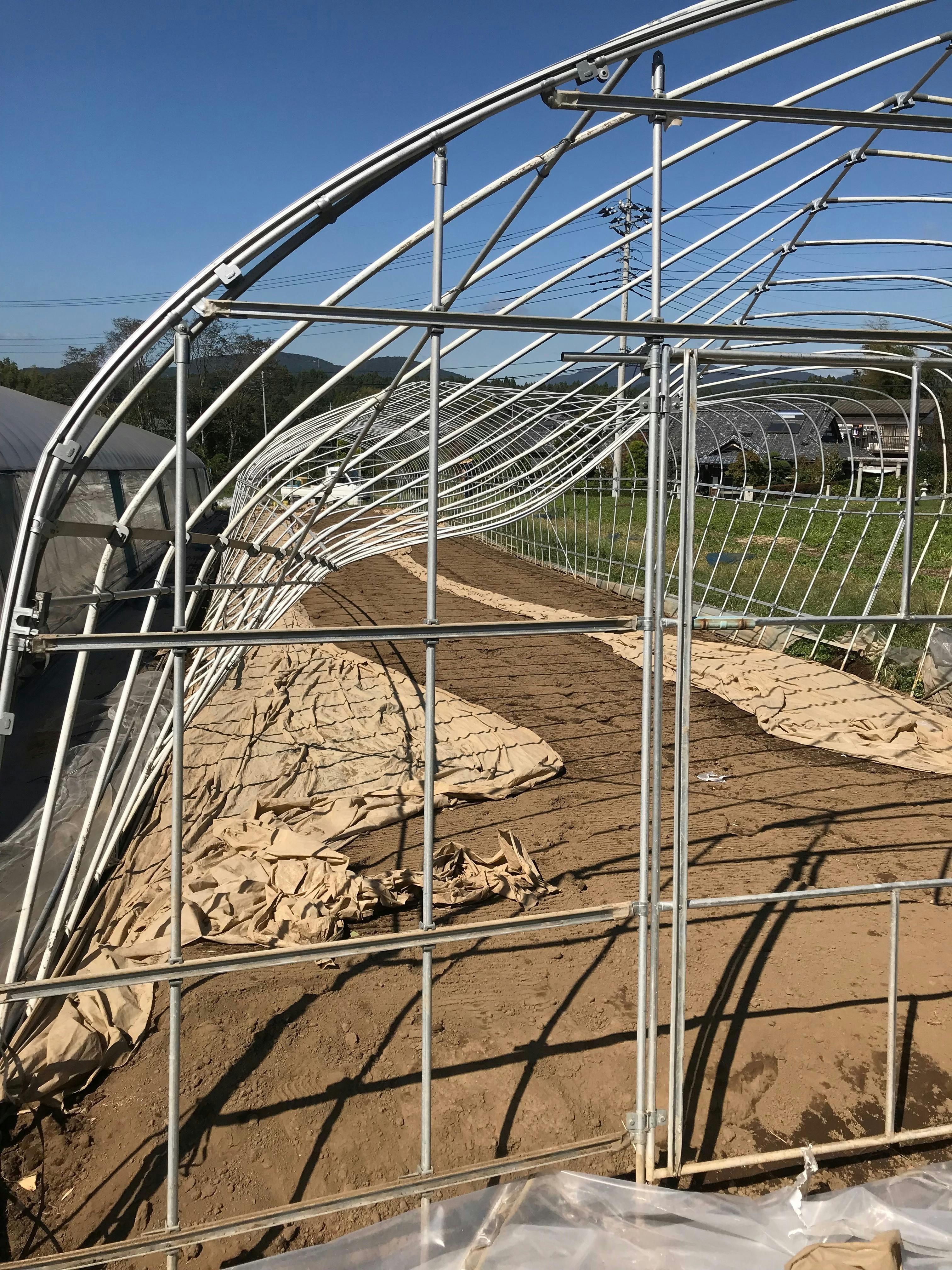 壊れたハウスを解体することから始まり。