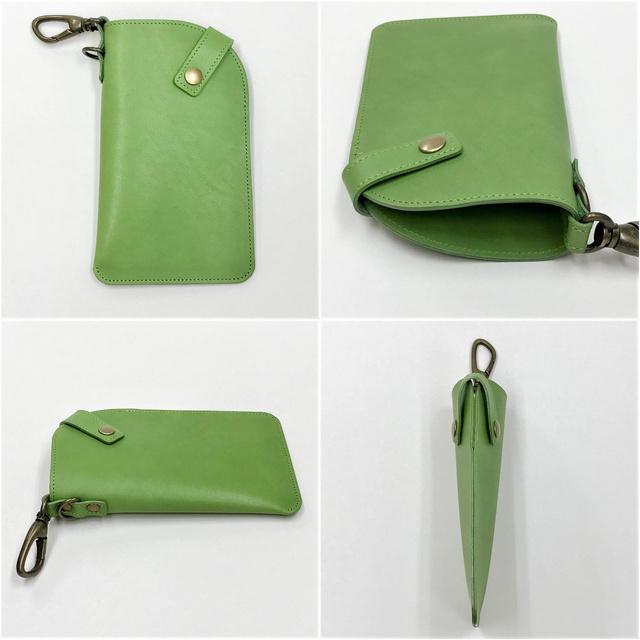 実は、革の内張りは①と連動していて、バネホックからジャンパーホックに変更すると金具の底部の凹凸が大きくなり、スマホを保護する観点からも必要な改良でした。