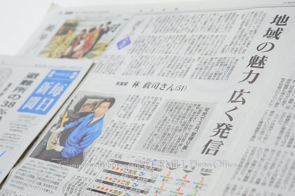 毎日新聞社 岐阜全県版の「ぎふ人物記」という岐阜県内で活躍する人物を、毎月ほぼ一人に絞り取材する欄に私が掲載されました。『地域の魅力 広く発信』と題して、私の写真家としての始まりから今までの活動、NHK名古屋放送センタービルでの写真展(昨年11月)の事や、今回計画中の「可児市での写真展」の事を取材頂き、A4サイズよりも大きなサイズで1月14日朝刊の岐阜県版に掲載されました!
