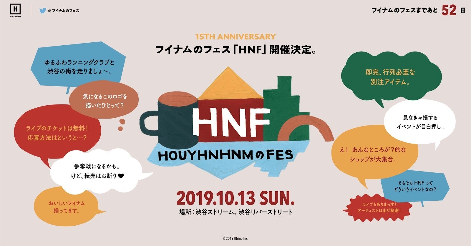 10月13日、フイナムは1日限りの都市型フェス「HNF(フイナムのフェス)」を開催します。