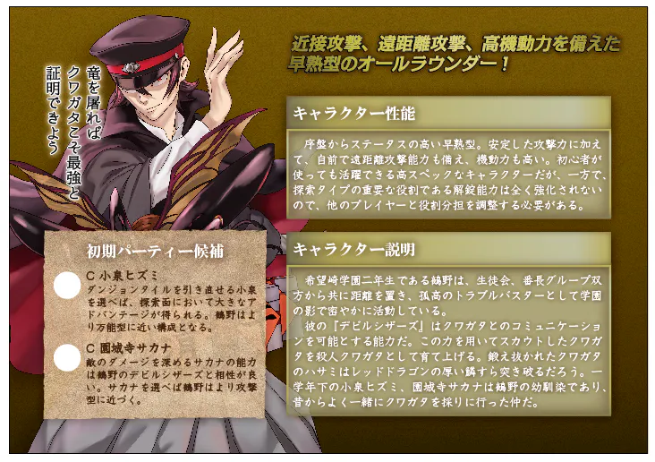 プレイヤーキャラクターカードの裏面に記載するテキストです。