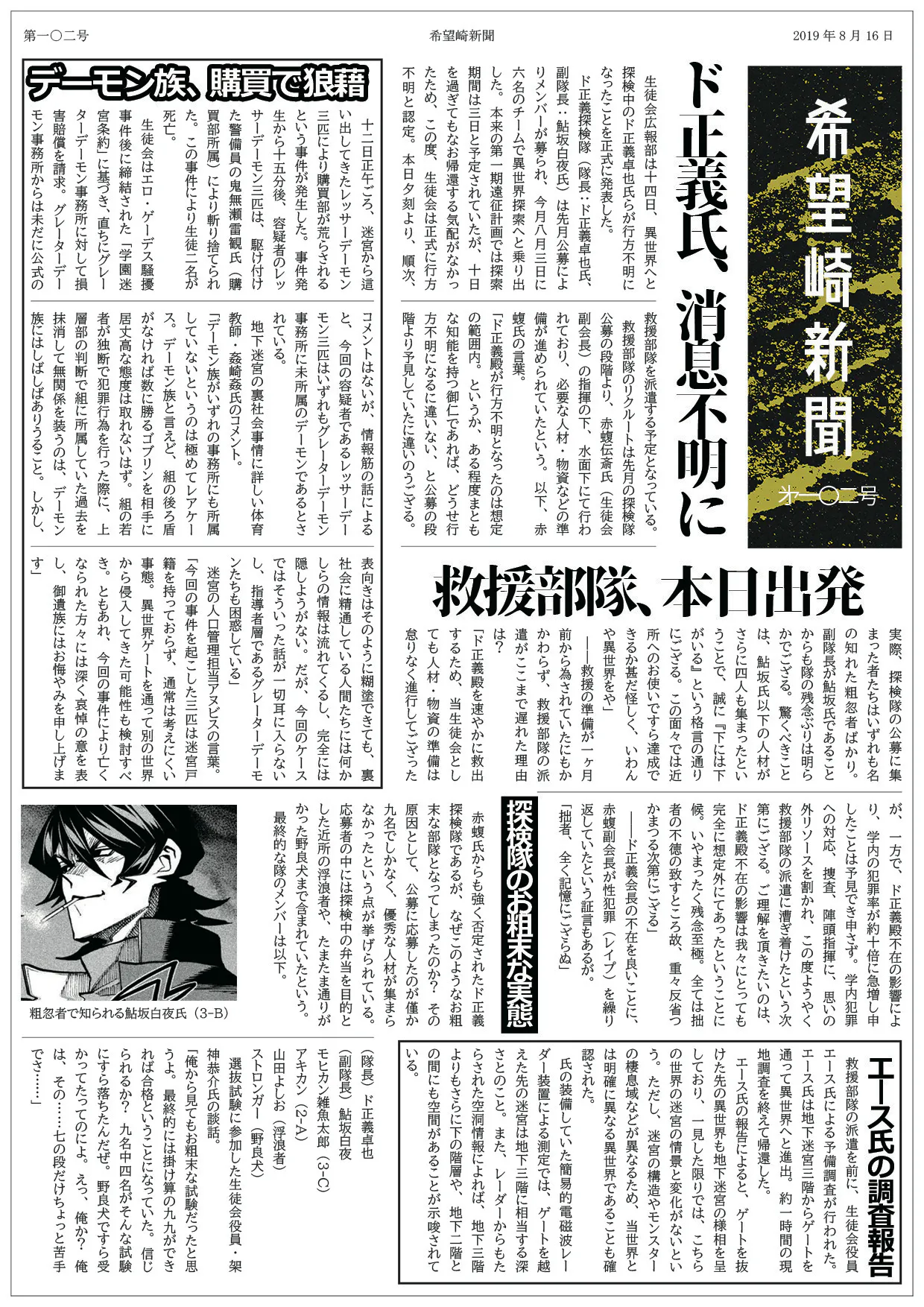 異世界へのゲートを通り、異世界へと進出したド正義率いる探検隊が消息不明となった。