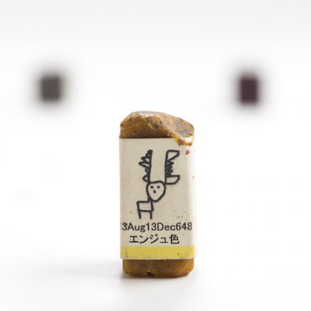 後ろには寝転がったTuna-Kaiクレヨンたち。前にエンジュ色のTuna-Kaiクレヨン。