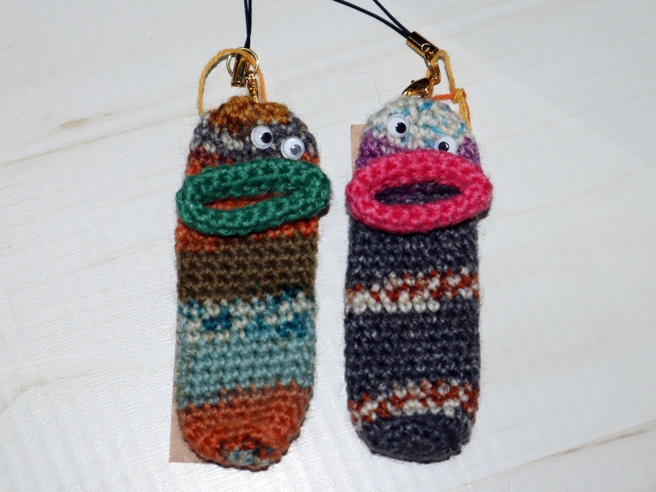 パクパク星人の体はカラフルな毛糸ソックヤーンで編んでいます。