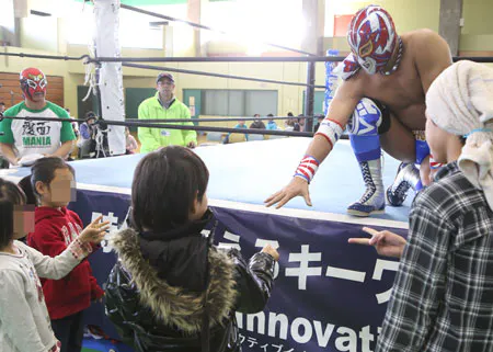 初めてプロレスを観戦される子供達、女性の方でも恐怖感無く、受け入れていただけるよう、全員選手の全員が覆面レスラーとし、2006年9月から東京・新木場の会場を拠点に活動をしてきました。