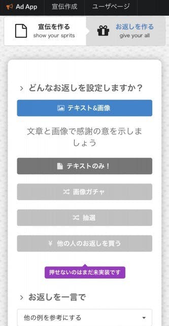 adAppでは見返り(リターン)をあげることで、リツイートやフォローなどアクションを起こしてもらえやすくなります。