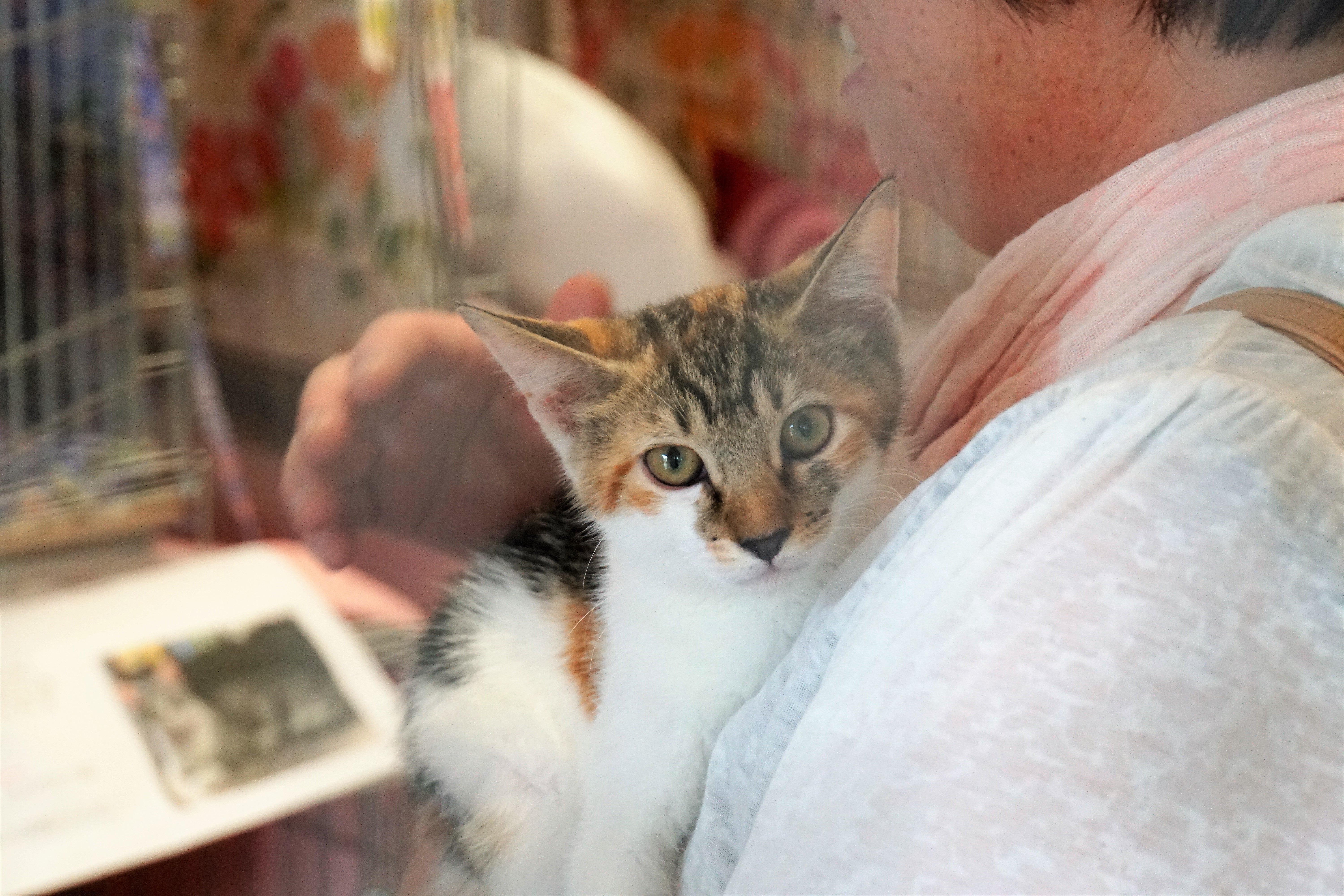 保護ねこたちは、ねこカフェで暮らしたり譲渡会に参加したりしながら、里親という新しい飼主さんを探しています。