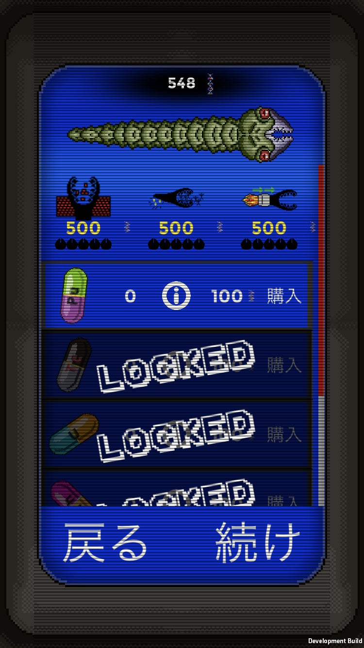 スコアが溜まるにしたがってウォームゼッドは進化して、もっと大きく、速くなります。