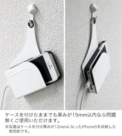 画像はハードケースを付け厚みが12mmになったiPhone5の使用例です。この位の厚みだと素のままのiPhone5を収納するのと変わらない快適な使用感です。