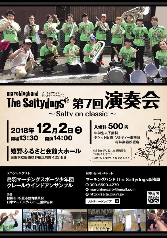 こんにちは,マーチングバンドThe Saltydogs(ザソルティードッグズ)です。