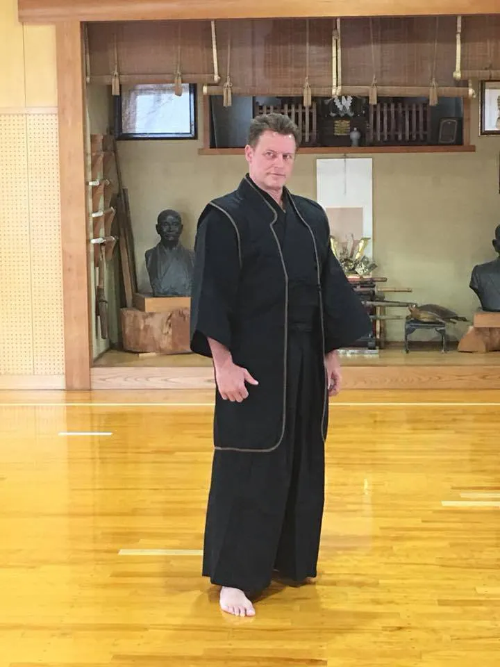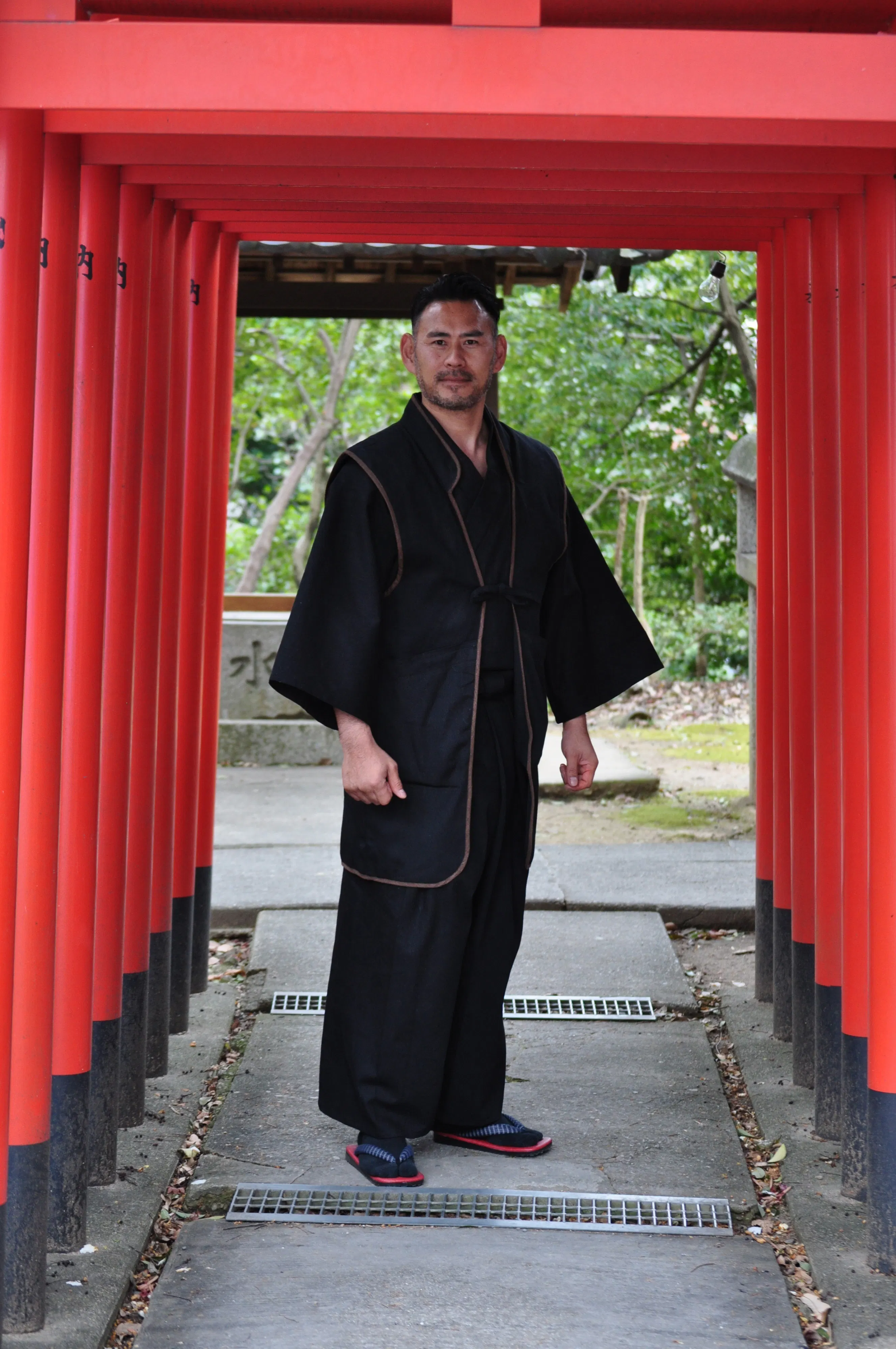 1964年 名古屋生まれ小学4年生から剣道を始め高校3年春に三段を取得、中学3年に居合と出会い、初段となる。その後25年のブランクの後、3人の息子とともに剣道を再開、現在5段。居合道も再開する、その中で高段者の先生方も演武用の紋付以外に普段に着るお着物をお持ちではないこと、剣道居合道実践者が町人着物を好まない事に気付き、自分も欲しい本物の侍着物を創ることを決意、岡山のデニムメーカーより最高級素材を提供していただき、その生地を国内武道具製造会社の信頼の技術で製造する事が出来、皆様にこの【侍着物~SHOUGEN~】をお披露目することが出来ました。安価なコスプレ着物ではなく、仰々しい紋付き袴でもない、侍着物。是非あなたの着物ライフを価値ある豊かなものにするために、このSHOUGENを手にしてみてくださることをお薦め致します。ありがとうございます。