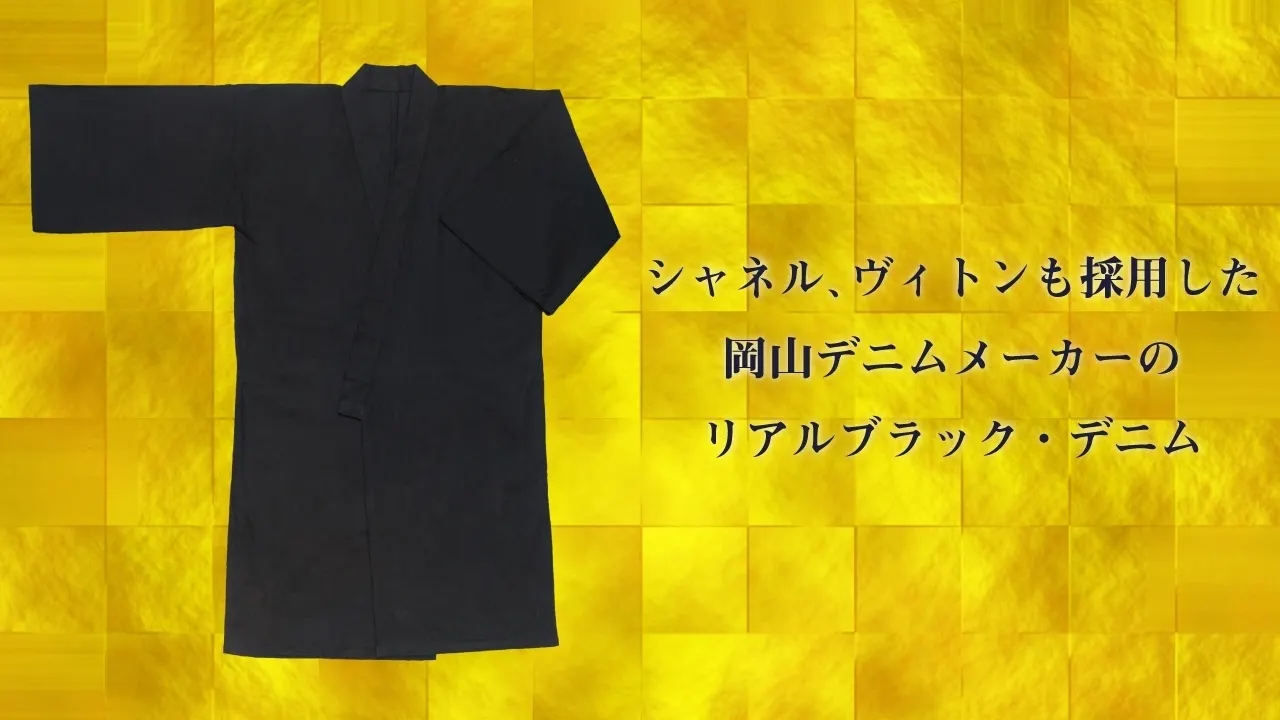 シャネル、ヴィトンも採用した国内有数の岡山デニムメーカーが製造する先染めリアルブラックデニム。手摘みのジンバブエコットン使用により、均一の品質にはない独特の風合いを醸し出し、風格ある光沢と凜とした品格を圧倒的な存在感の中に秘めた侍着物です。