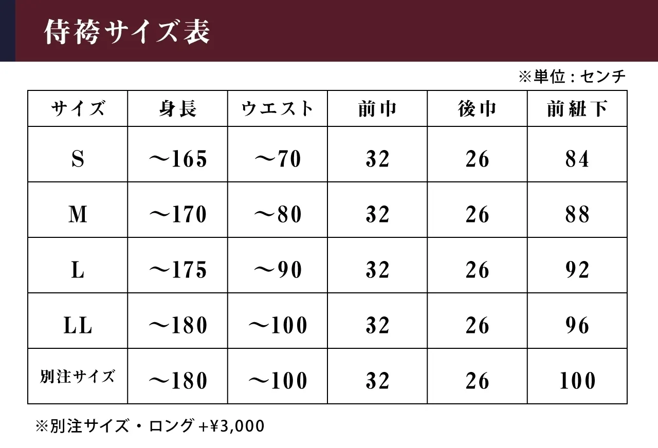 国内有名防具メーカー(株)安信商会の80年の歴史に裏打ちされた、技術と経験。シンプルな中に機能性と堅牢性、そして今までにないシルエットの美しさを兼ねそろえております。普段使いに邪魔になることなく、演武にも袴捌きが映える強く美しい侍袴です。