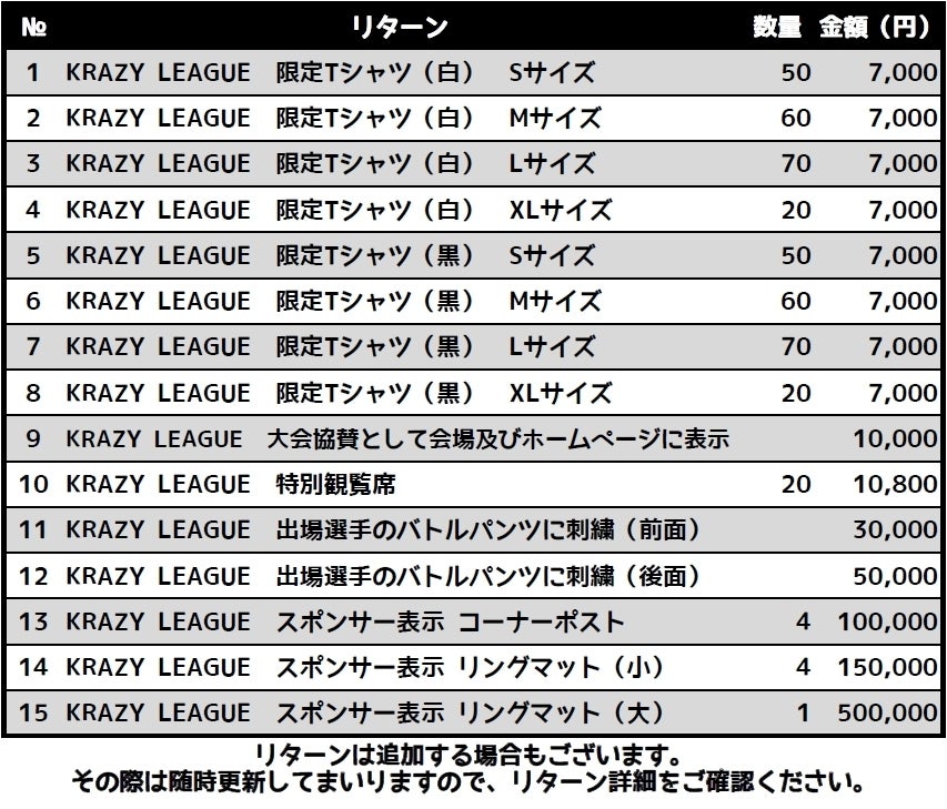 皆様のご協力を今後の格闘技界の更なる発展、進化に繋げ、自分も人生を「KRAZY LEAGUE」に賭けて行きたいと思います。