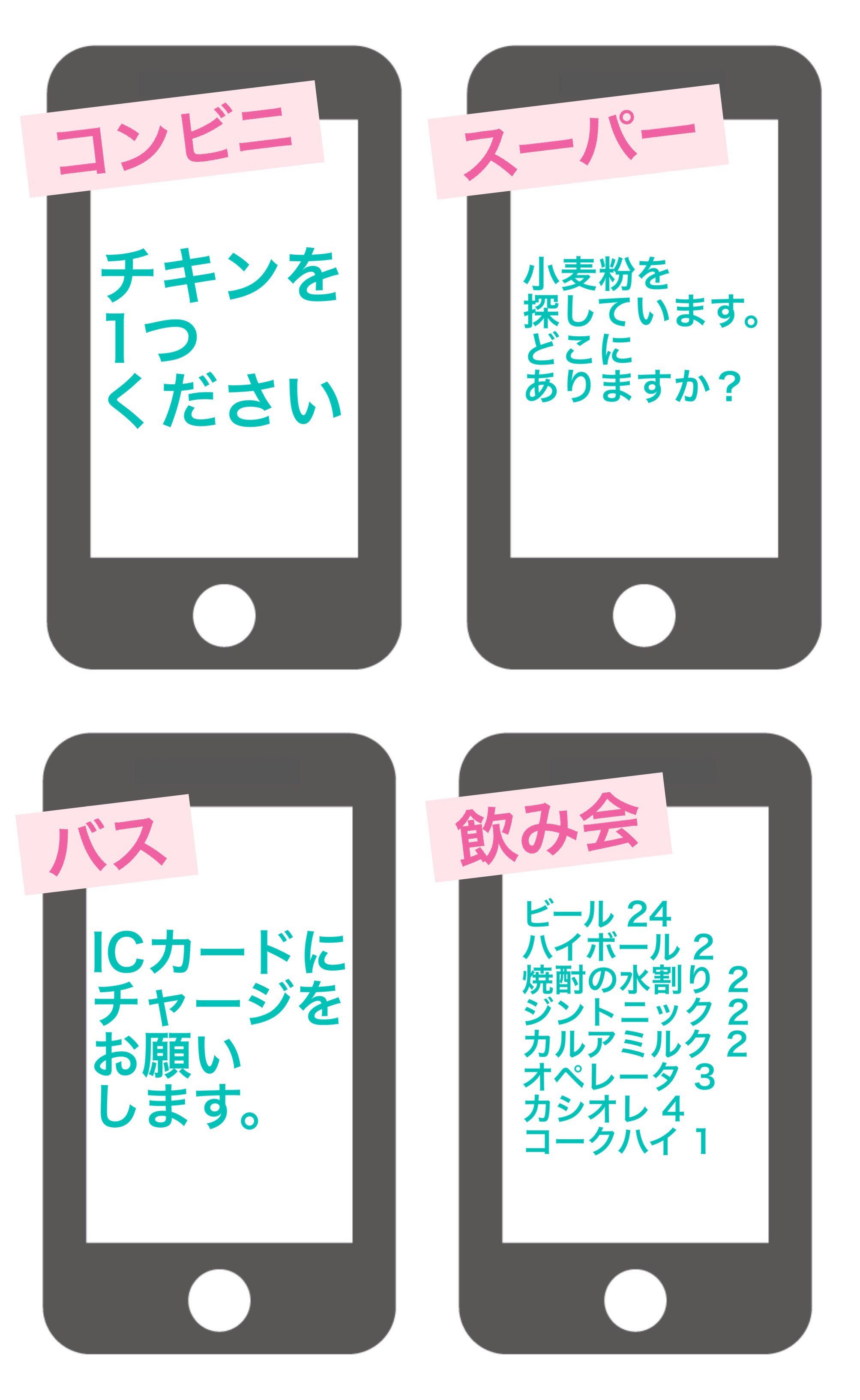 文字での注文に慣れ口頭での注文に挑戦できそうな気がしたとき 話し始める前に「ことばを流暢に話すことができない障害があります。」と記入した画面を見せておくなど、吃音があることを伝える際にも役に立ちます。