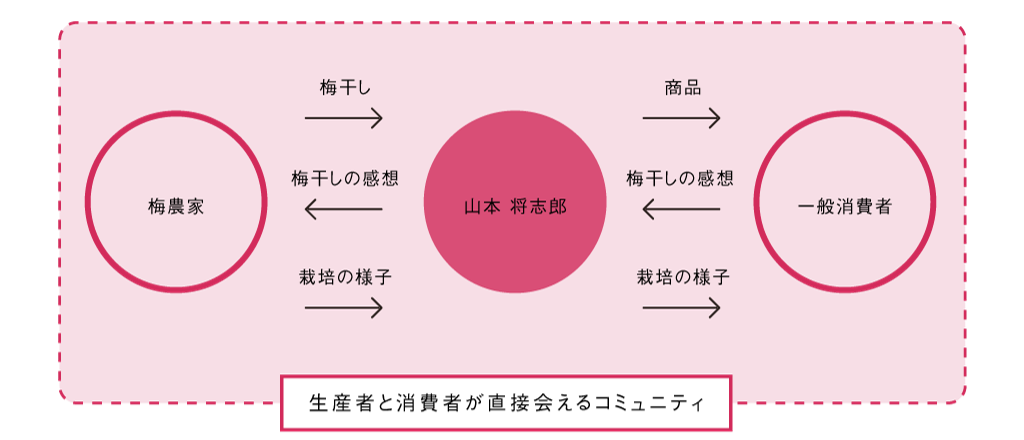 "兄と札幌の消費者’’ 間で起きた変革を、"町の梅農家と全国の消費者'' 間で引き起こすことです。