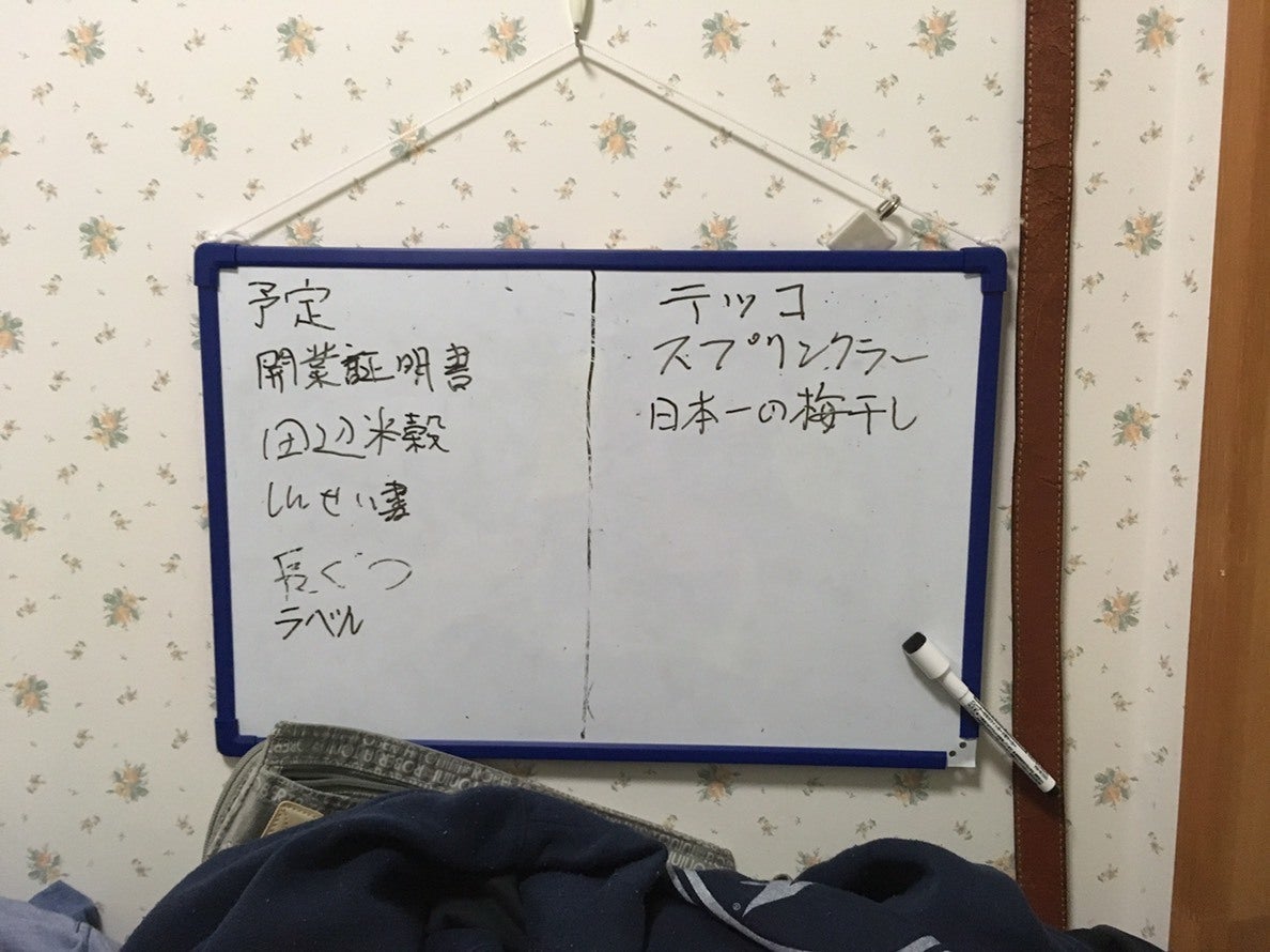 自宅の予定ボードには「日本一の梅干し」の文字が。