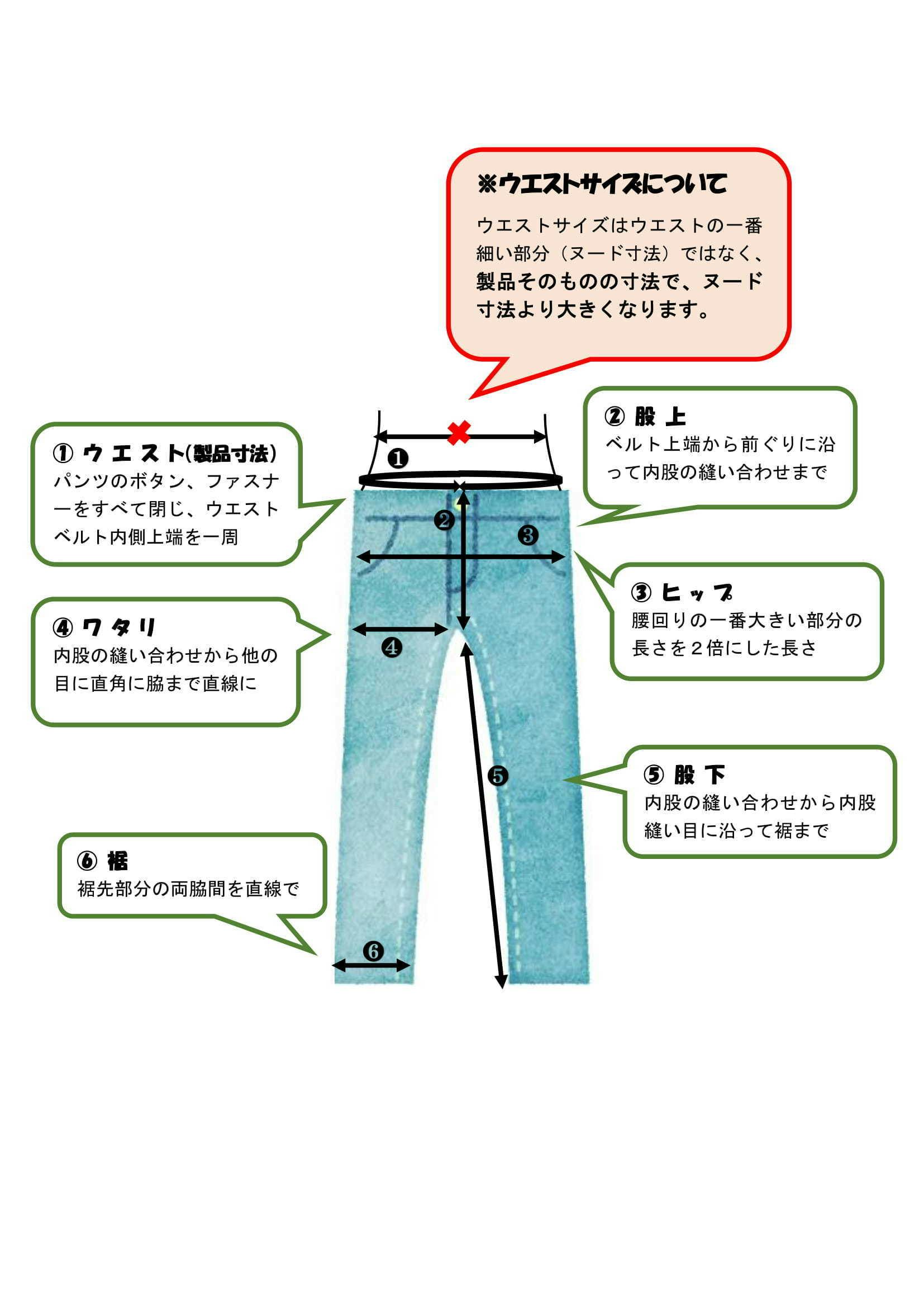 通常のデニムよりスキニーな履き心地です。普段購入している大きさよりも1~2サイズ大きいサイズを購入することをお薦めします。
