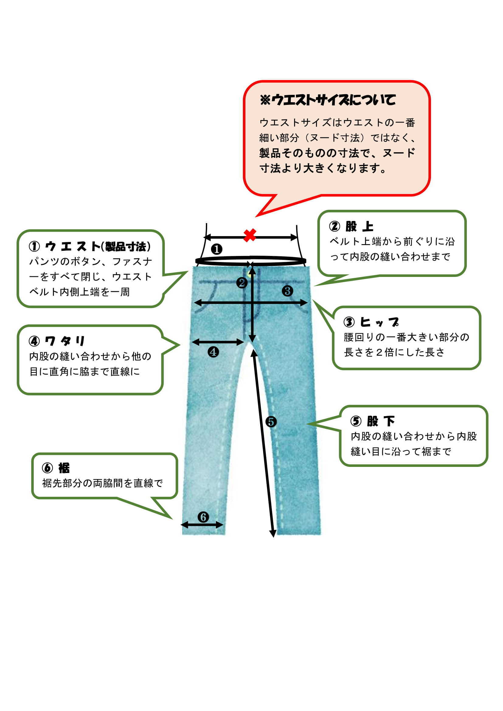 通常のデニムよりスキニーな履き心地です。普段購入している大きさよりも1~2サイズ大きいサイズを購入することをお薦めします。
