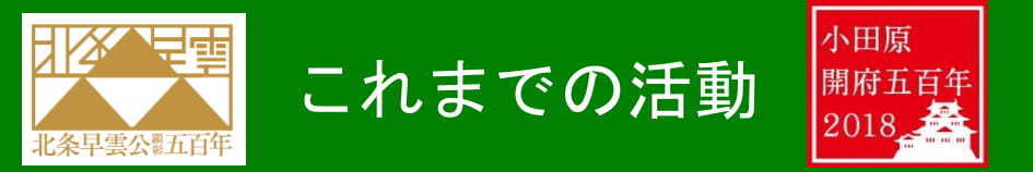 私たち北条早雲公顕彰五百年事業実行委員会ではこれまで4つの主催イベントのほか、29のプロモーション活動を実施してきました。
