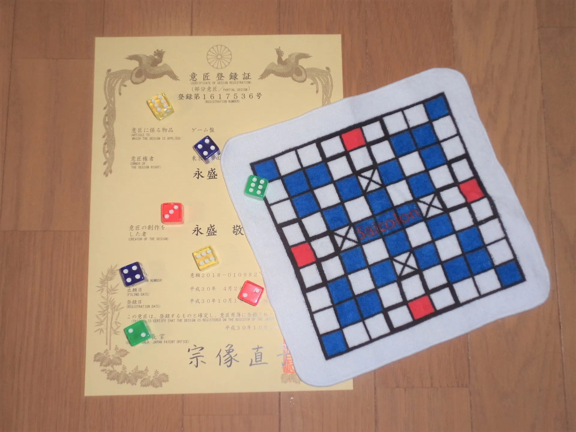 盤面のデザインについては意匠権を取得しています。(登録第1617536号)