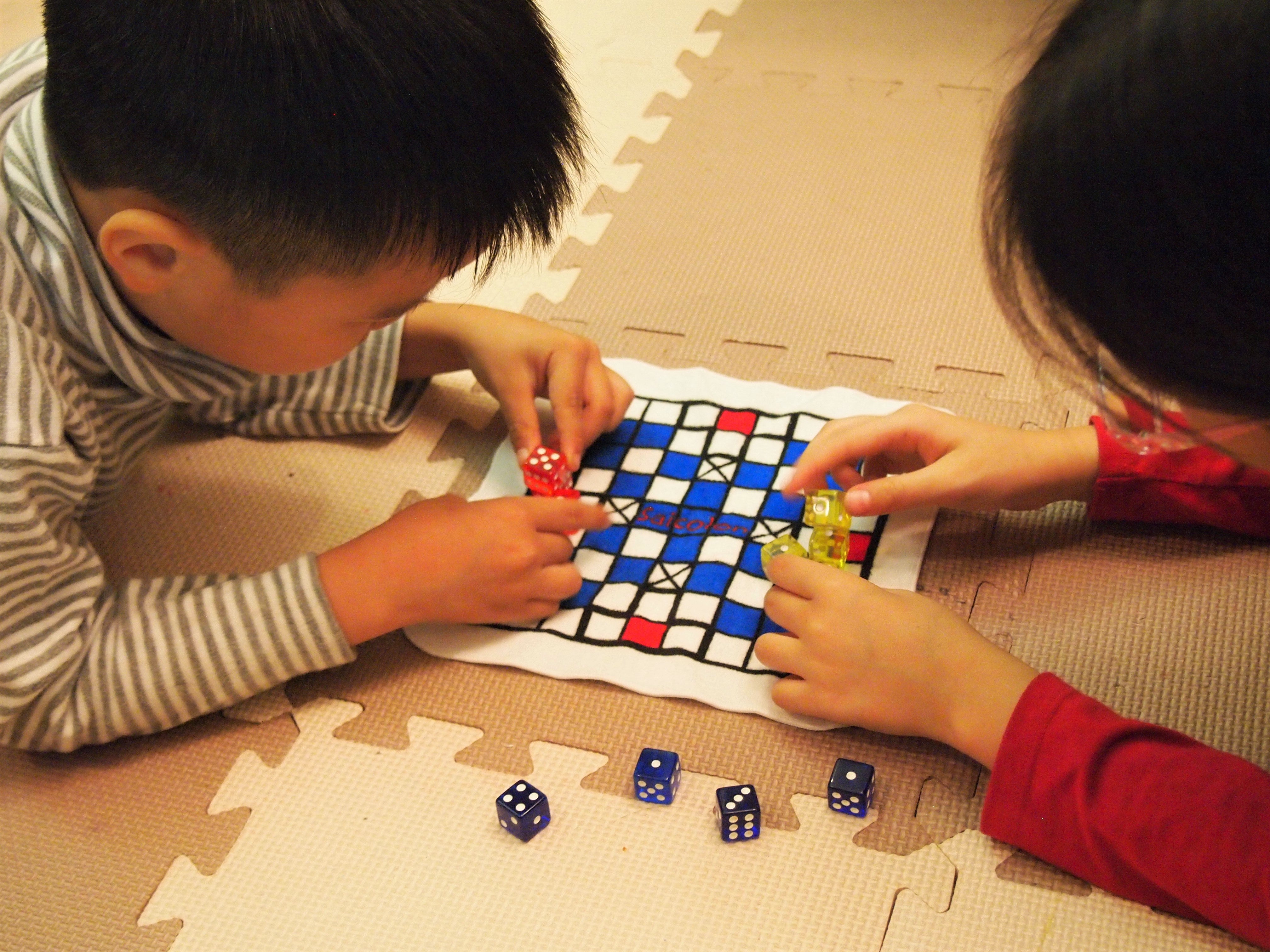 また、サイコロをつまんで前後左右に回転したり、サイコロを投げたり積み上げたりする動作は、指先の運動や集中力を鍛えることにもつながります。