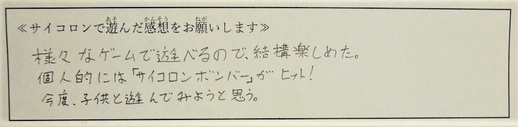 また今後、公式ページにおいて、サイコロンを使った新しいゲームの募集も実施する予定です。一緒にサイコロンを進化させていきましょう!