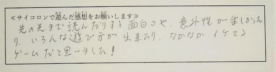 サイコロンはこれまでに数十名(現在も増加中)の人にテストプレイしていただき、総テストプレイ回数は100回以上になります。