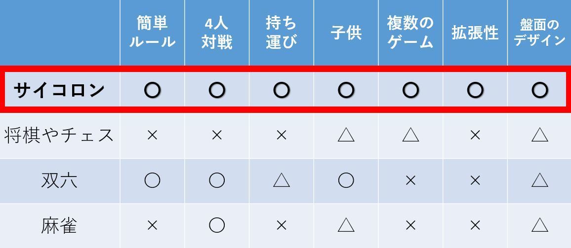 何故なら既存の多くのボードゲームには、2人でしか遊べなかったり、持ち運びがしにくかったり、ルールが難しかったりといった不便な点があるからです。
