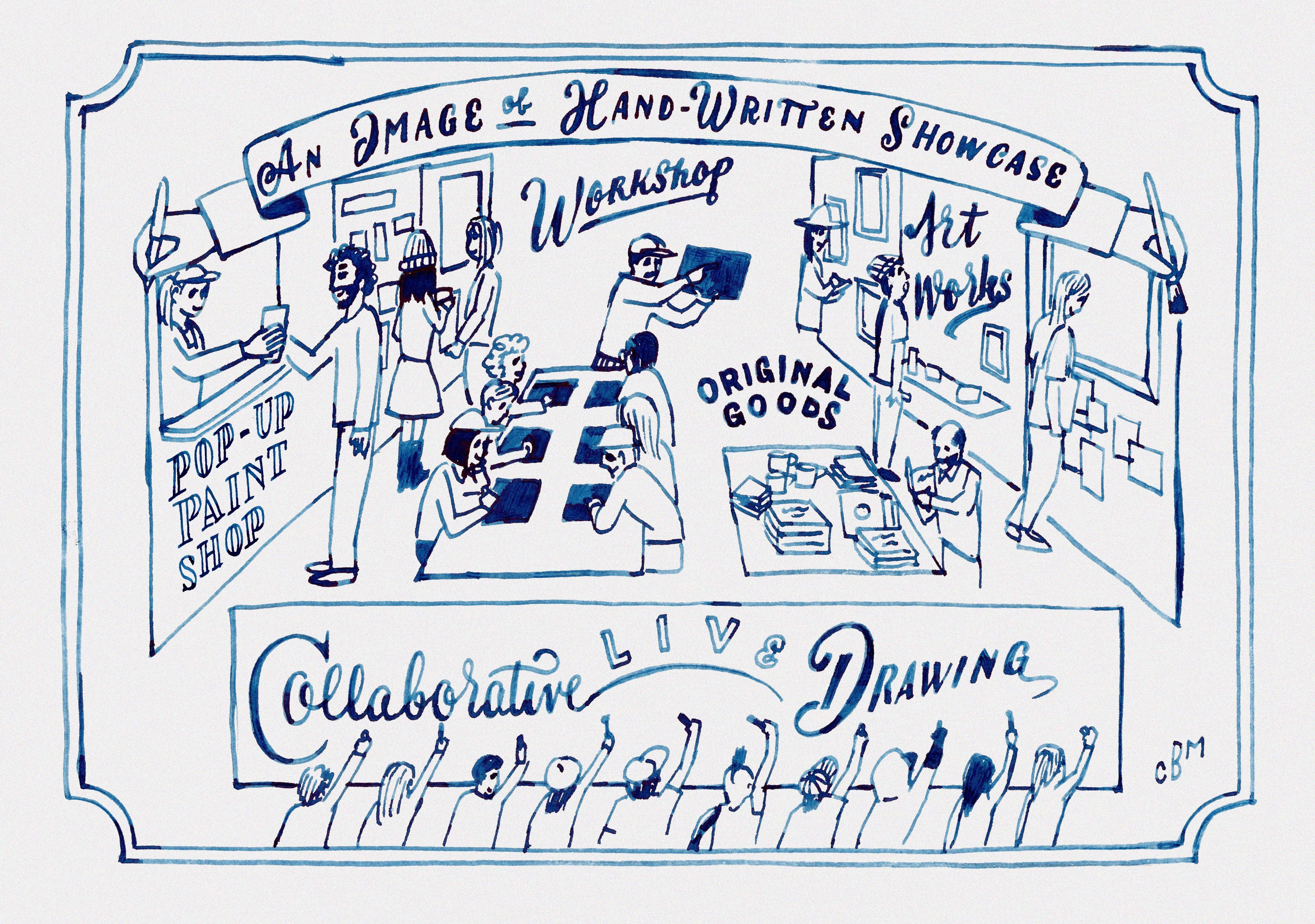 【ハンド-リトゥン ショーケース】は、有名無名に関わらず様々な手描きスタイルで作品を生み続けるアーティストの発表の場であり、アーティスト同士やファン/お客さんとの交流の場でもあり、作品やワークショップを通してインスパイアし次のアーティストを誕生させる、手描きシーンのプラットフォームでありたいと願います。