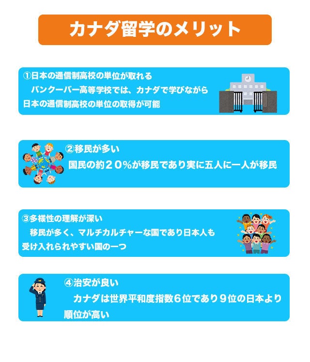 当会は①にもある通りバンクーバー高等学校という日本の通信制高校のコーディネーターがカナダにおり、スムーズな派遣が可能となります。