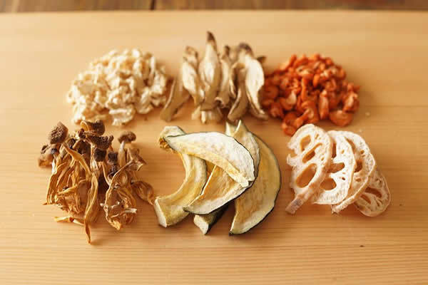 このことを地元のフードコーディネーターに相談したところ、野菜は乾燥させたらうまみや食感や栄養が増すとのアドバイスをいただきました。