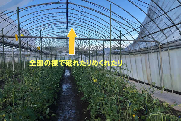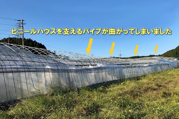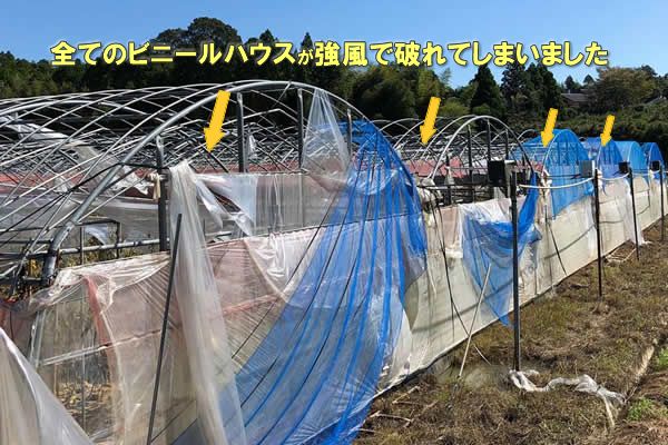 安心安全な野菜をお届けする夢に向かって、これまでは順調だったのですが、今年は宮崎県を襲った二つの大型台風の直撃を受け、ビニールハウスが裂けて壊れる被害が出てしまいました。