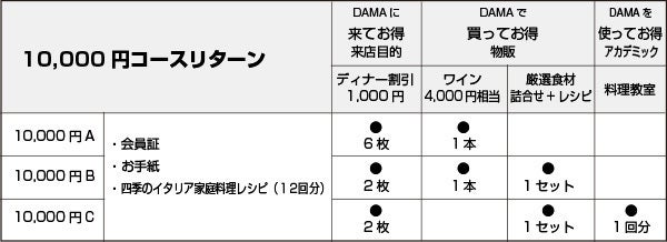 11、『DAMAファン!ガンガンDAMAとイタリアワイン』30000円 Aコース
