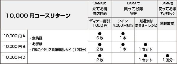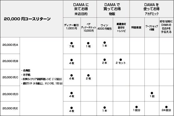 ・4人以上で、DAMAで貸切ランチタイム予約が出来る権利2回(12:00~15:00)
