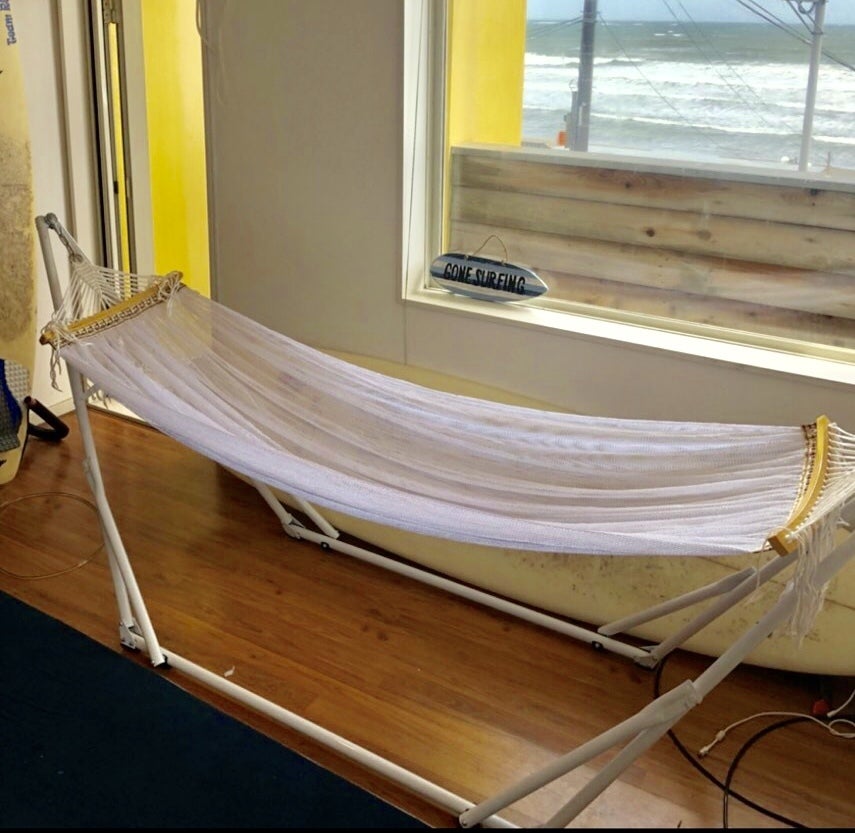 現在、弊社の鎌倉由比ヶ浜事務所に置いてあるハンモックも、ゲストハウスの庭へ移動します。
