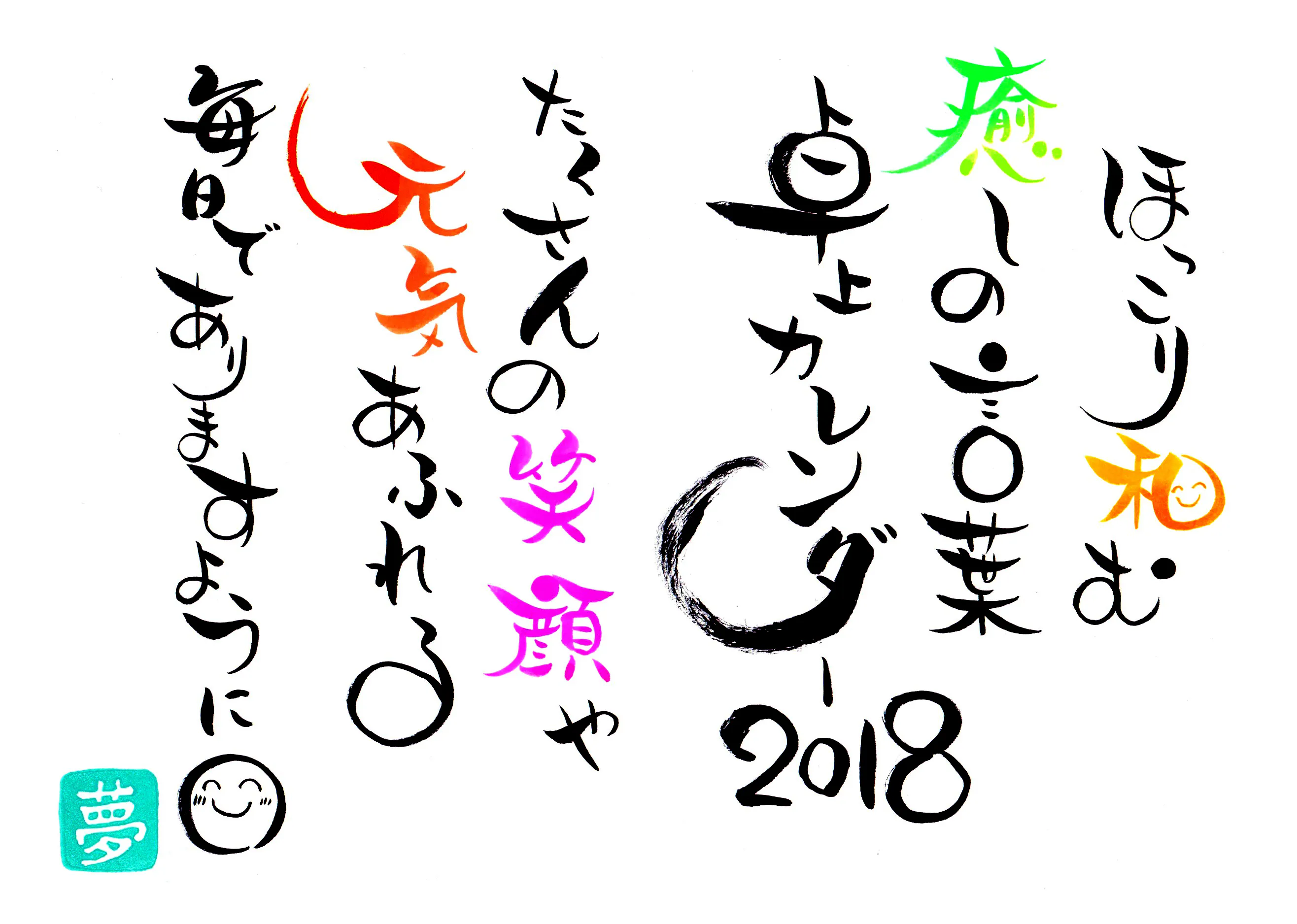 2017年、活動の一環でやっていたSHOWROOMでご縁がありお世話になっている筆文字詩人の先生に、2018年のカレンダーを作っていただき「カレンダーを作る」目標は達成されました。そしてその瞬間から新しい目標が出来ました。